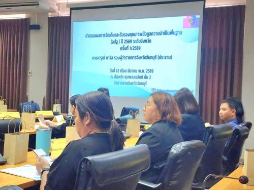 นางจารุณี กาวิล รองผู้ว่าราชการจังหวัดจันทบุรี เป็นประธานการประชุมคณะทำงานบริหารการจัดเก็บข้อมูลความจำเป็นพื้นฐาน (จปฐ.) และข้อมูลพื้นฐานระดับหมู่บ้าน (กชช.2ค) ด้วยเครื่องมืออิเล็กทรอนิกส์ จังหวัดจันทบุรี ครั้งที่ 1/2569 พร้อมด้วยหัวหน้าส่วนราชการและหน่วยงานที่เกี่ยวข้องเข้าร่วมประชุม โดย นางสาวกาญจนา ทองเกษม พัฒนาการจังหวัดจันทบุรี ร่วมนำเสนอผลการดำเนินงานการจัดเก็บและรับรองคุณภาพข้อมูล จปฐ. ของจังหวัดจันทบุรี ให้คณะกรรมการพิจารณารับรองข้อมูลความจำเป็นพื้นฐาน (จปฐ.) ปี 2569 เพื่อนำไปใช้ประโยชน์เป็นฐานข้อมูลการพัฒนาคุณภาพชีวิตประชาชนให้ดีขึ้นในทุกระดับ