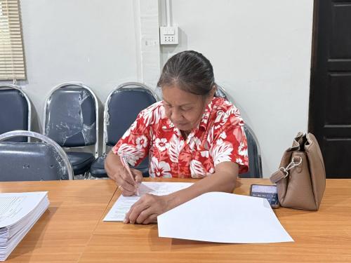 นางสาวสุทิศา แก้วงาม พัฒนาการอำเภอสอยดาว พร้อมด้วย นางสาวจิดาภา เหลืองสกุลไทย นักวิชาการพัฒนาชุมชนปฏิบัติการ ดำเนินการจัดทำสัญญาโครงการส่งเสริมและพัฒนาทักษะการผูกผ้าและจับจีบผ้าในงานพิธีแก่สตรีอำเภอสอยดาว โดยได้ชี้แจงรายละเอียดเกี่ยวกับการทำสัญญาโครงการฯ ให้สมาชิกที่ได้รับเงินสนับสนุนทราบ และได้เน้นย้ำการบริหารจัดการโครงการให้ถูกต้องตามระเบียบฯ และให้เกิดประโยชน์สูงสุด เพื่อเป็นการส่งเสริมและสนับสนุนการประกอบอาชีพ สร้างงาน สร้างรายได้ อีกทั้งเสริมสร้างความเข้มแข็งทางเศรษฐกิจฐานราก ให้ประชาชนมีคุณภาพชีวิตที่ดี และยั่งยืนต่อไป