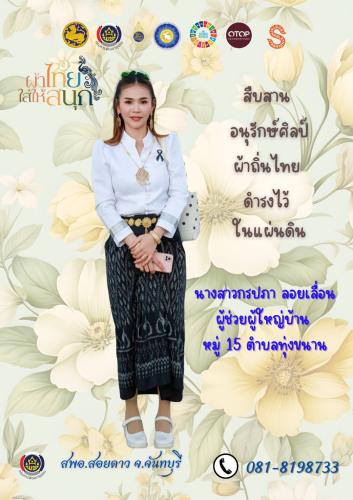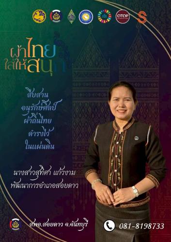สำนักงานพัฒนาชุมชนอำเภอสอยดาว เชิญชวนสวมใส่ผ้าไทย ในทุกๆโอกาส ภายใต้แนวคิด "ผ้าไทย ใส่ให้สนุก" ร่วมสืบสาน รักษา และต่อยอด พระราชปณิธา