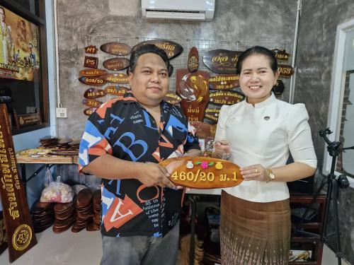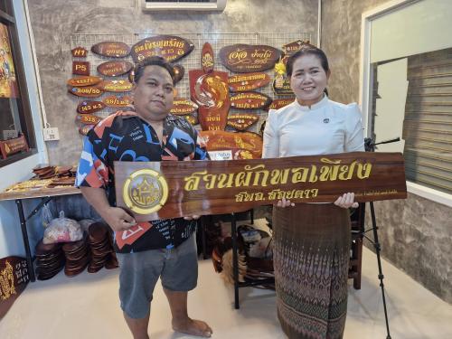 นางสาวสุทิศา แก้วงาม พัฒนาการอำเภอสอยดาว พร้อมด้วยนางสาวสุวรรณา ถนอมศิลป์ นักวิชาการพัฒนาชุมชนปฏิบัติการ ลงพื้นที่เยี่ยมเยียน ติดตาม/สนับสนุนการดำเนินงาน กลุ่มผู้ผลิต ผู้ประกอบการ OTOP กลุ่ม "อ้อป้ายไม้&อิงค์เจ็ท" ผลิตภัณฑ์ของกลุ่มเป็นผลิตภัณฑ์จากไม้ ได้แก่ ป้ายไม้ และตัวอักษรไม้มงคล ซึ่งมีความปราณีต สวยงาม แข็งแรง คงทน พร้อมทั้งได้ร่วมแลกเปลี่ยนเทคนิคกลยุทธ์ในการเพิ่มช่องทางการตลาดทั้งตลาดออนไล์/ตลาดออฟไลน์ เพื่อความสะดวก รวดเร็ว ทันสมัย ถูกใจ เป็นที่ต้องการของตลาดในยุคปัจจุบันในการนี้ ขอขอบคุณ คุณวัชจนะ นาคขม ผู้ผลิต ผู้ประกอบการ OTOP กลุ่ม "อ้อป้ายไม้&อิงค์เจ็ท" ที่ได้จัดทำป้ายสนับสนุนกิจกรรมของสำนักงานพัฒนาชุมชนอำเภอสอยดาว
