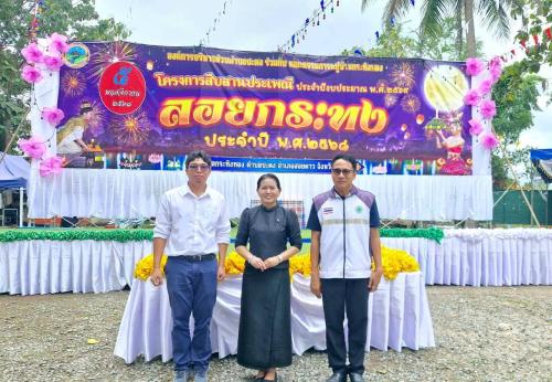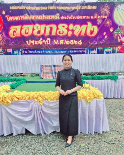 นางสาวสุทิศา แก้วงาม พัฒนาการอำเภอสอยดาว พร้อมด้วยเจ้าหน้าที่พัฒนาชุมชนอำเภอสอยดาว ร่วมสืบสานประเพณีลอยกระทง ณ วัดกระทิงทอง ตำบลปะตง อำเภอสอยดาว จังหวัดจันทบุรี
