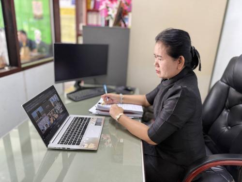 นางสาวสุทิศา แก้วงาม พัฒนาการอำเภอสอยดาว พร้อมด้วยเจ้าหน้าที่พัฒนาชุมชนอำเภอสอยดาว เข้าร่วมรับฟังการประชุมขับเคลื่อนกิจกรรมตามแผนปฏิบัติราชการของสำนักเสริมสร้างความเข้มแข็งชุมชน ประจำปีงบประมาณ 2569 : คลินิก สสช.ผ่านระบบอิเล็กทรอนิกส์ (Cisco Webx Meetings)