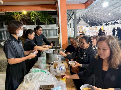 นางสาวภิญญาพัชญ์ แน่แท้ เกษตรอำเภอสอยดาว ประธานในพิธีนำหัวหน้าส่วนราชการ ข้าราชการ พนักงานรัฐวิสาหกิจ เจ้าหน้าที่ และประชาชนอำเภอสอยดาว ร่วมพิธีบำเพ็ญกุศลสวดพระอภิธรรมถวายพระราชกุศลแด่สมเด็จพระนางเจ้าสิริกิติ์ พระบรมราชินีนาถ พระบรมราชชนนีพันปีหลวง เพื่อแสดงความอาลัยและสำนึกในพระมหากรุณาธิคุณอันหาที่สุดมิได้