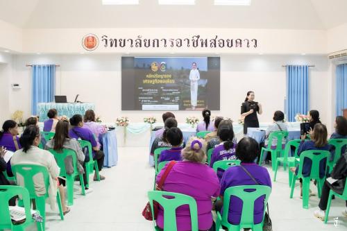 ในการนี้ นางสาวสุทิศา แก้วงาม ได้รับเกียรติเป็นวิทยากรบรรยายให้ความรู้แก่กลุ่มเป้าหมายองค์กรสตรีตำบลทรายขาว จำนวน 45 คน ในหัวข้อดังนี้