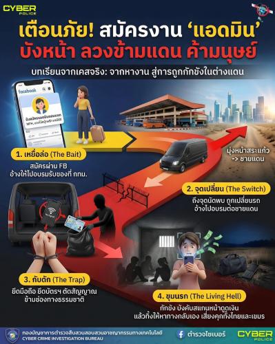 #สำนักงานพัฒนาชุมชนอำเภอสอยดาว #ตำรวจไซเบอร์ #cyberpolice #เตือนภัยออนไลน์ #หลอกทำงาน #ค้ามนุษย์ #แก๊งคอลเซ็นเตอร์