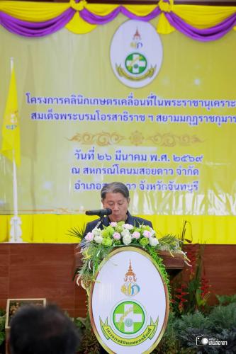 นายมนต์สิทธิ์ ไพศาลธนวัฒน์ ประธานในพิธีเปิดโครงการ พร้อมด้วยหัวหน้าส่วนราชการที่เกี่ยวข้อง ร่วมดำเนินโครงการคลินิกเกษตรเคลื่อนที่ในพระราชานุเคราะห์ สมเด็จพระบรมโอรสาธิราชฯ สยามมกุฎราชกุมาร ประจำปีงบประมาณ พ.ศ. 2569 ครั้งที่ 2/2569 โดยหน่วยงาน สำนักงานเกษตรจังหวัดจันทบุรี