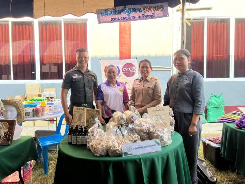 ในการนี้ นางสาวสุทิศา แก้วงาม พัฒนาการอำเภอสอยดาว พร้อมด้วย นางสาวสุณิชา แตะต้อง นักวิชาการพัฒนาชุมชนปฏิบัติการ และนางสาวสุวรรณา ถนอมศิลป์ นักวิชาการพัฒนาชุมชนปฏิบัติการ นำผลิตภัณฑ์ชุมชน (OTOP) มาร่วมออกบูธจำหน่ายในโซนตลาดเกษตรกรในงานดังกล่าว
